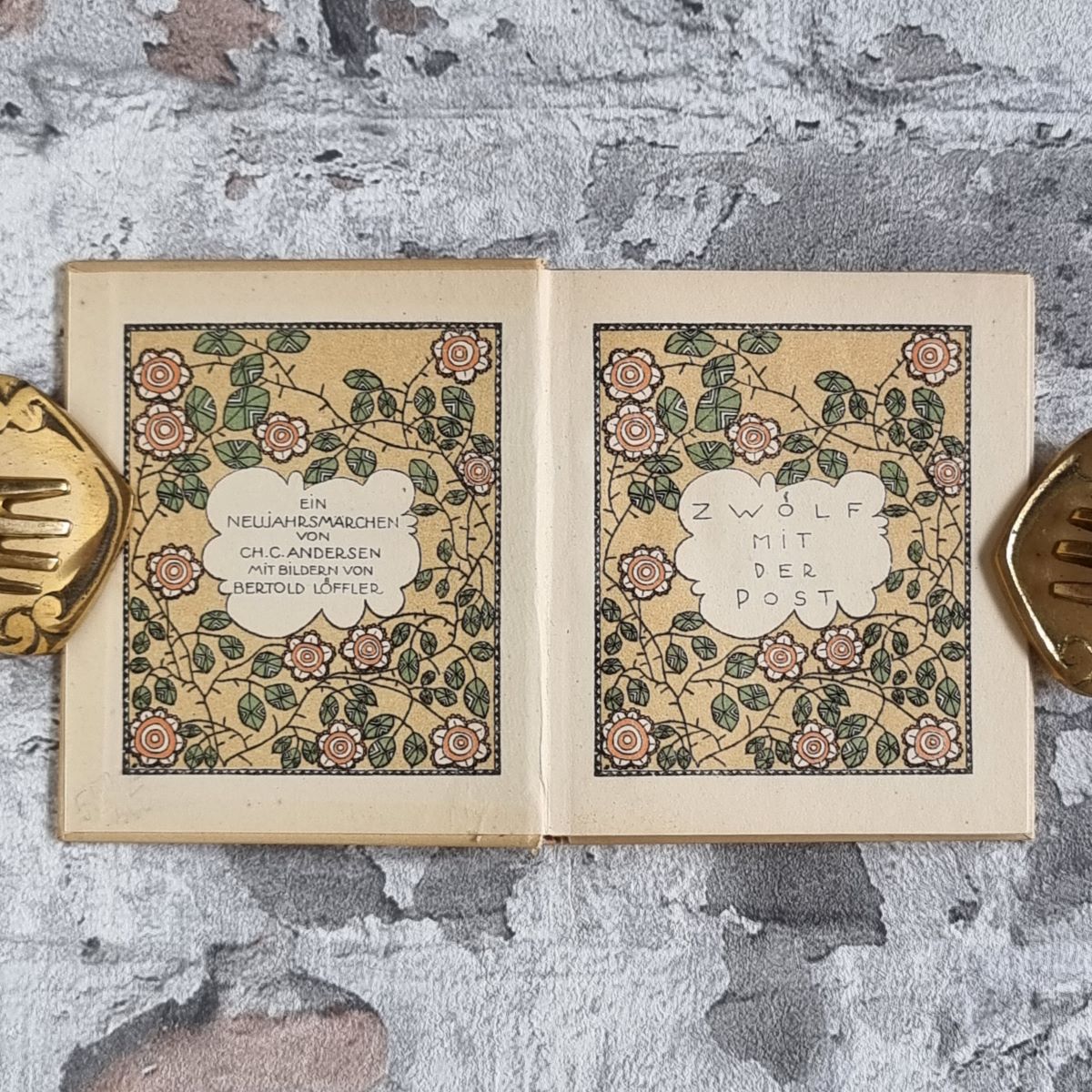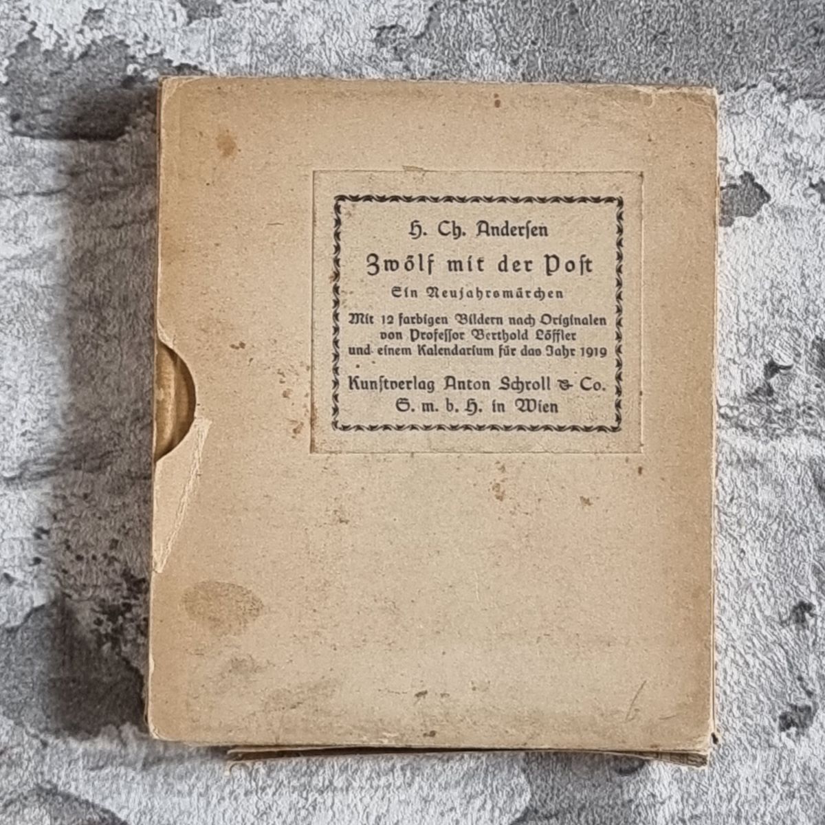 Andersen, Hans Christian: Zwölf mit der Post. Ein Neujahrsmärchen. Mit 12 farbigen Bildern nach Originalen von Berthold Löffler und einem Kalendarium für das Jahr 1919.
