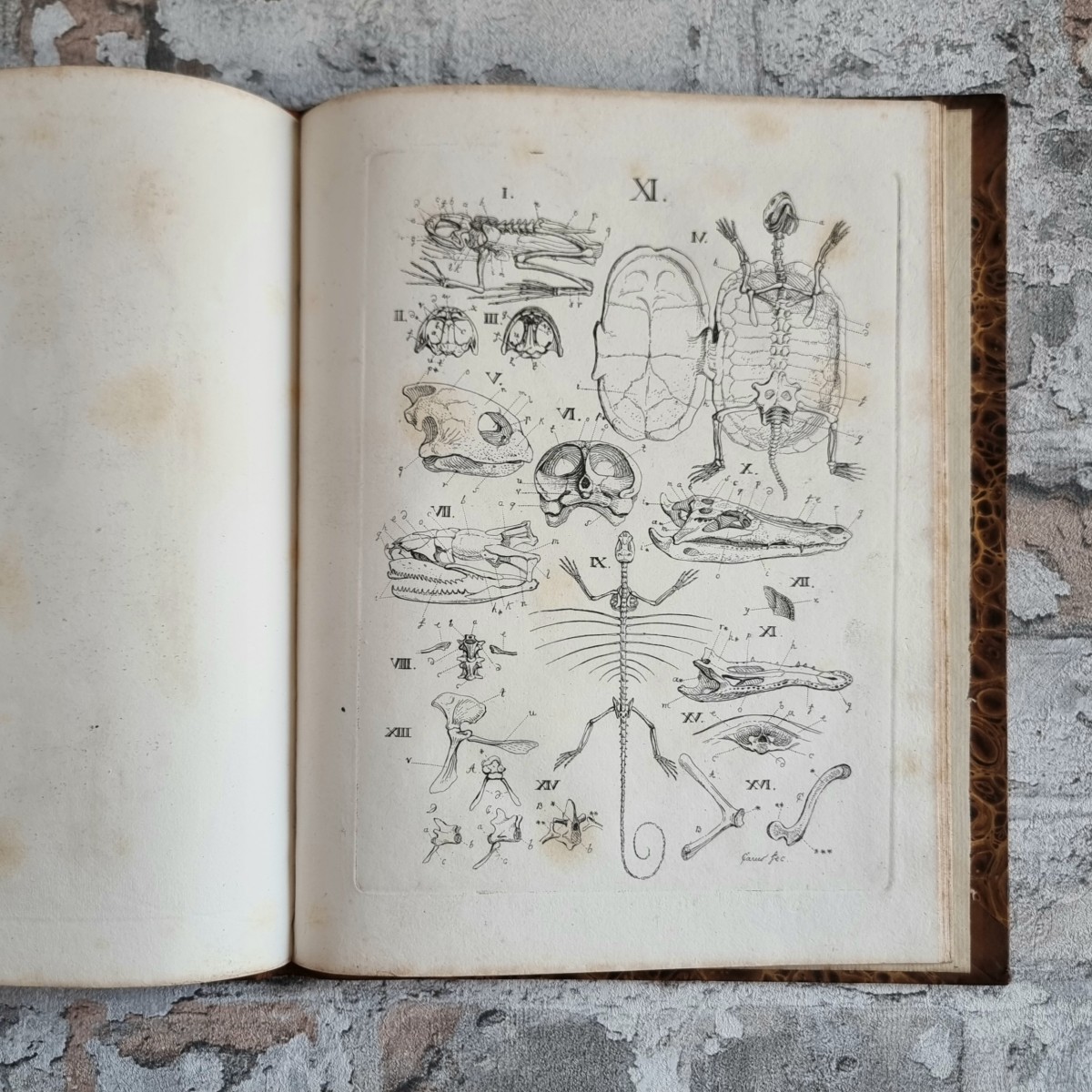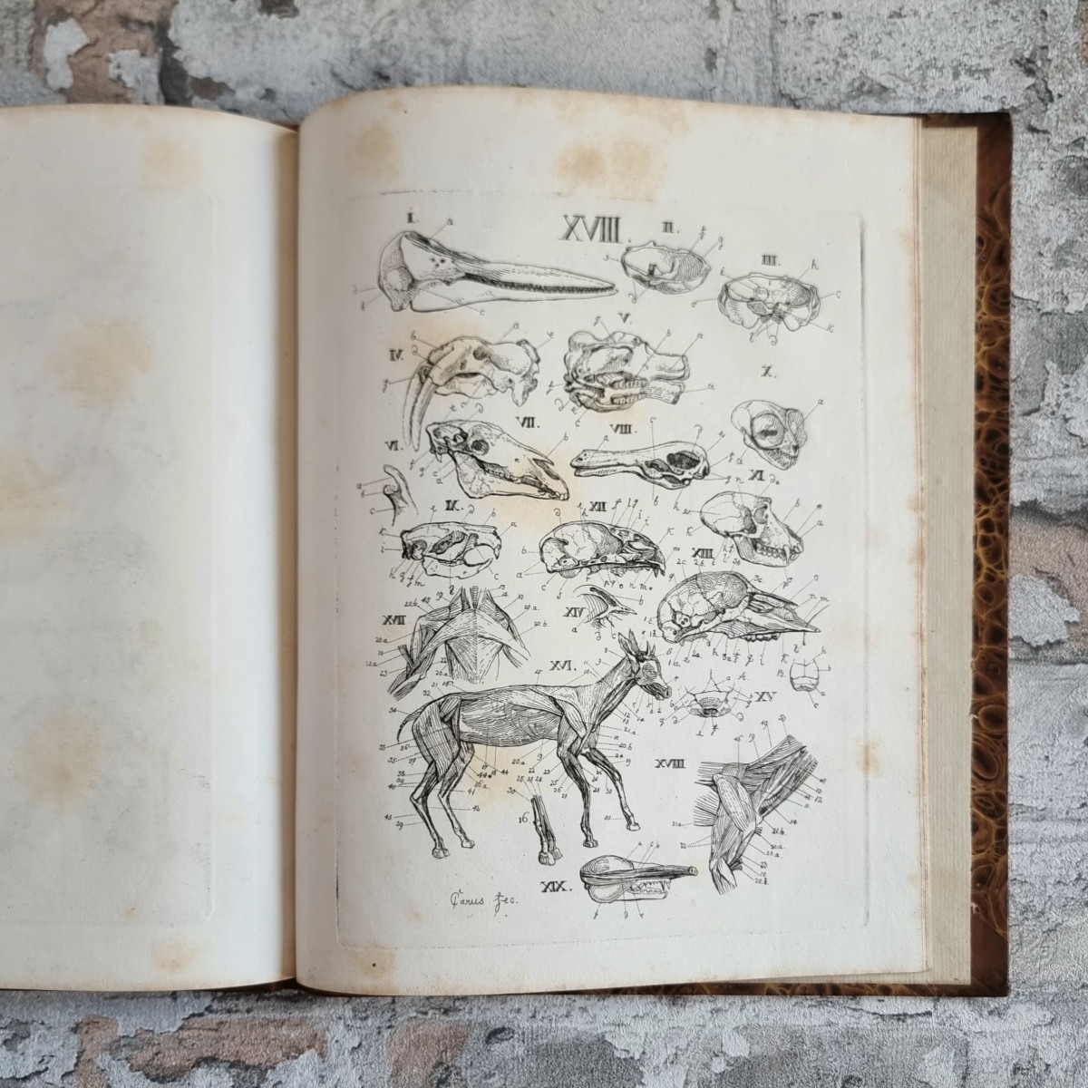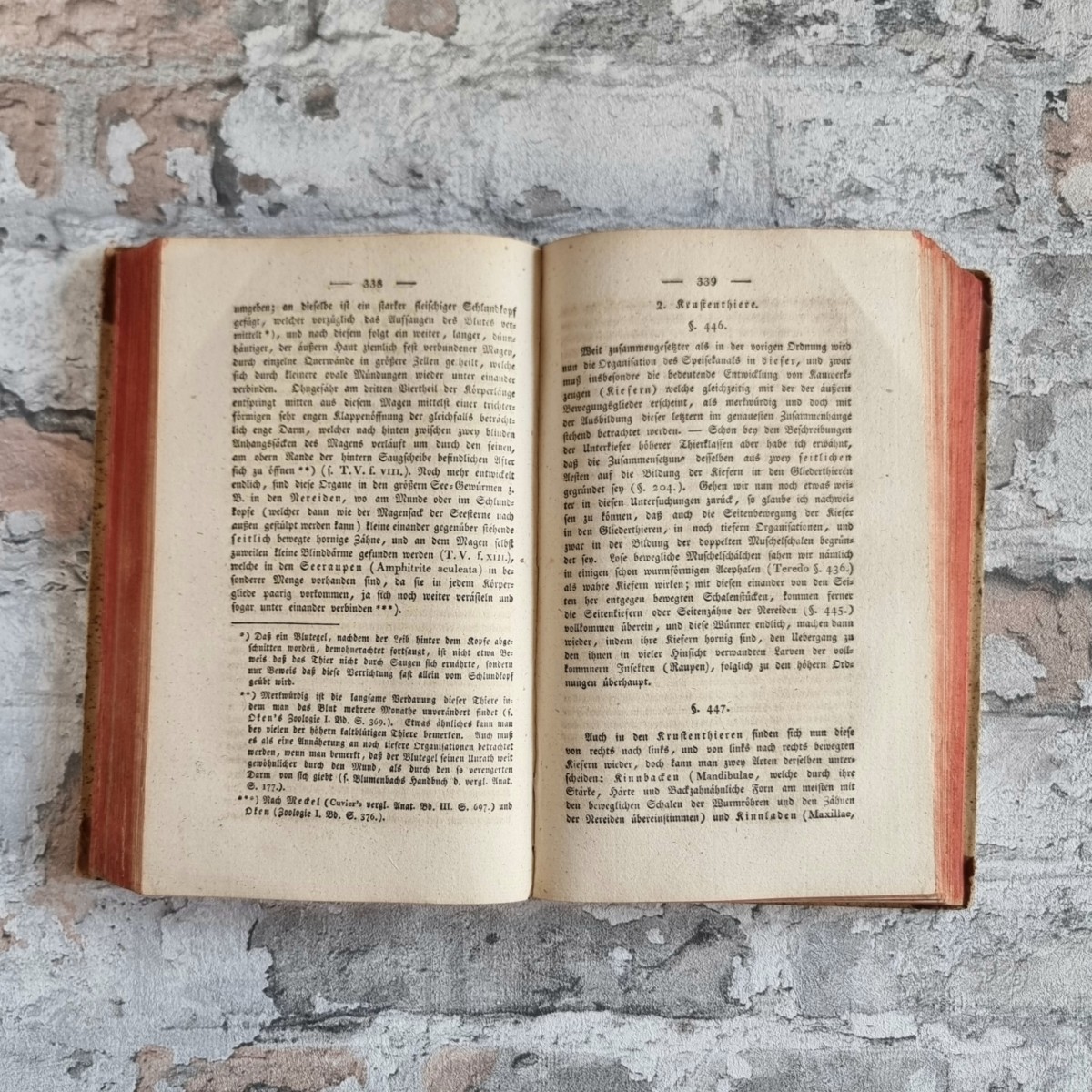 Kommentar/Zustand: Der Arzt, Naturforscher und Künstler Carl Gustav Carus (1789–1869) gestaltete mit dem Lehrbuch der Zootomie ein Standardwerk des frühen 19. Jahrhunderts. Es gilt als erste zusammenhängende Darstellung der tierischen Anatomie mit konsequenter Berücksichtigung physiologischer Fragestellungen. Die Kupfertafeln, teils nach der Natur gezeichnet, bieten einen reichen Anschauungsapparat und machten das Werk zugleich für Forschung und Lehre wertvoll. – Hauptband Ecken und Kanten leicht berieben. Handschriftliche Besitzervermerke auf fliegendem Vorsatz und Titelblatt. Vorsätze leicht stockfleckig. Auf Innenspiegel des Tafelbandes Exlibris „van der Hoeven“. Stellenweise etwas stockfleckig.