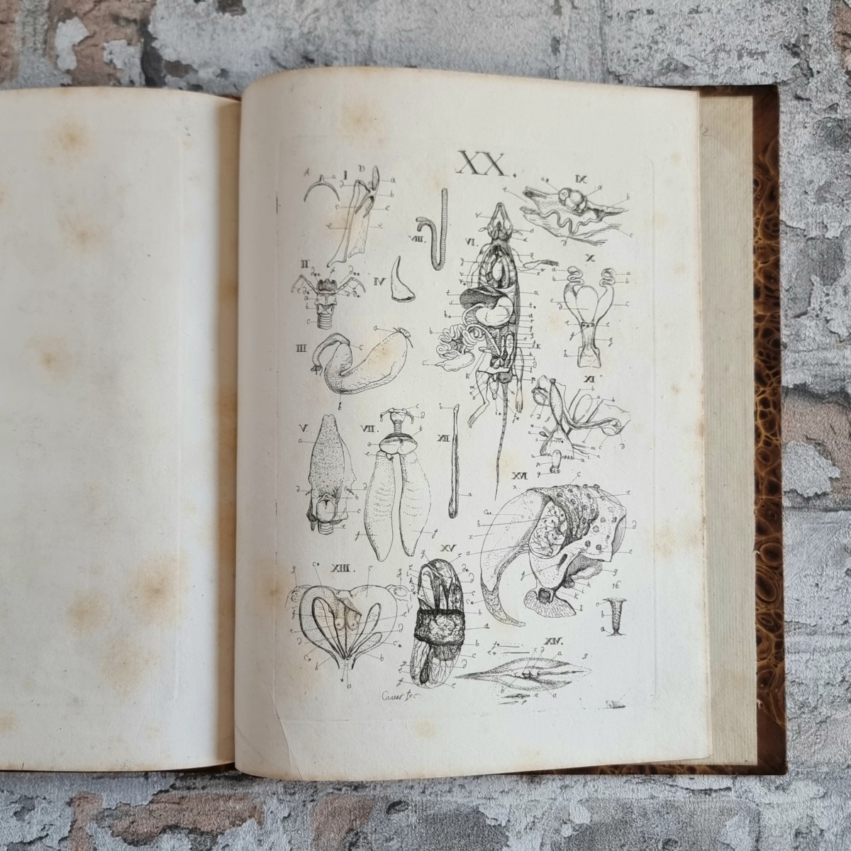 Carus, Carl Gustav. Lehrbuch der Zootomie. Mit stäter Hinsicht auf Physiologie ausgearbeitet, und durch zwanzig Kupfertafeln erläutert. (Hauptband und Tafelband).