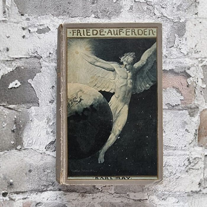 Kommentar/Zustand: Plaul 373.2., DB 85. – Spätwerk von Karl May, in dem die Abenteuererzählung deutlich zugunsten weltanschaulicher und pazifistischer Gedanken zurücktritt. Der Text verbindet Reise- und Begegnungsmotive mit einer ausgeprägten ethisch-religiösen Dimension und reflektiert Mays zunehmende Hinwendung zu humanistischen und versöhnenden Ideen. An die Stelle vordergründiger Handlung tritt eine symbolisch aufgeladene Darstellung von Verständigung, innerem Wandel und moralischer Verantwortung. Besondere Aufmerksamkeit verdient auch die künstlerische Ausstattung: Das farbige Deckelbild von Sascha Schneider zählt zu den markanten Buchillustrationen der Zeit und unterstreicht den programmatischen Anspruch des Werkes. Insgesamt ein charakteristisches Beispiel für Karl Mays Spätphase, das sowohl literaturgeschichtlich als auch ideengeschichtlich von Interesse ist. – Bezug an den Rückenkanten angerissen. Rechte Vorderkante leicht gestaucht. Reihentitelblatt und Titelblatt stockfleckig. Insgesamt gut erhaltenes Exemplar.