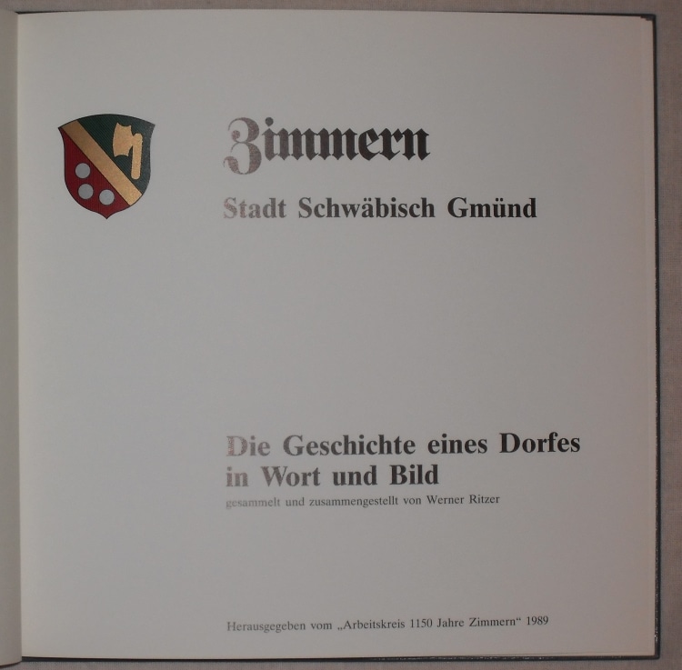 Ritzer, Werner. Zimmern. Stadt Schwäbisch Gmünd. Die Geschchte eines Dorfes in Wort und Bild gesammelt und zusammengestellt von Werner Ritzer. Herausgegeben vom „Arbeitskreis 1150 Jahre Zimmern“.