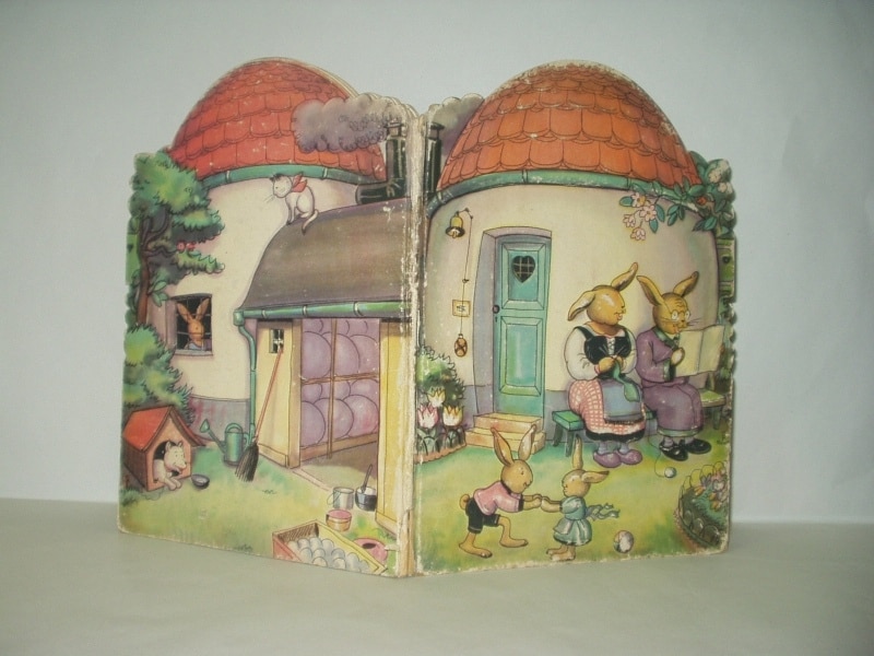 Kommentar/Zustand: VerlagsNr. 14. Umrissbilderbuch. – Familie Osterhase ist im Osterstress. – Einband am Rücken beschädigt und an den Rändern berieben. Einige Bilder von Kinderhand mit Wasserfarben koloriert. Alles in allem gut erhaltenes Exemplar des empfindlichen Umrissbilderbuches.