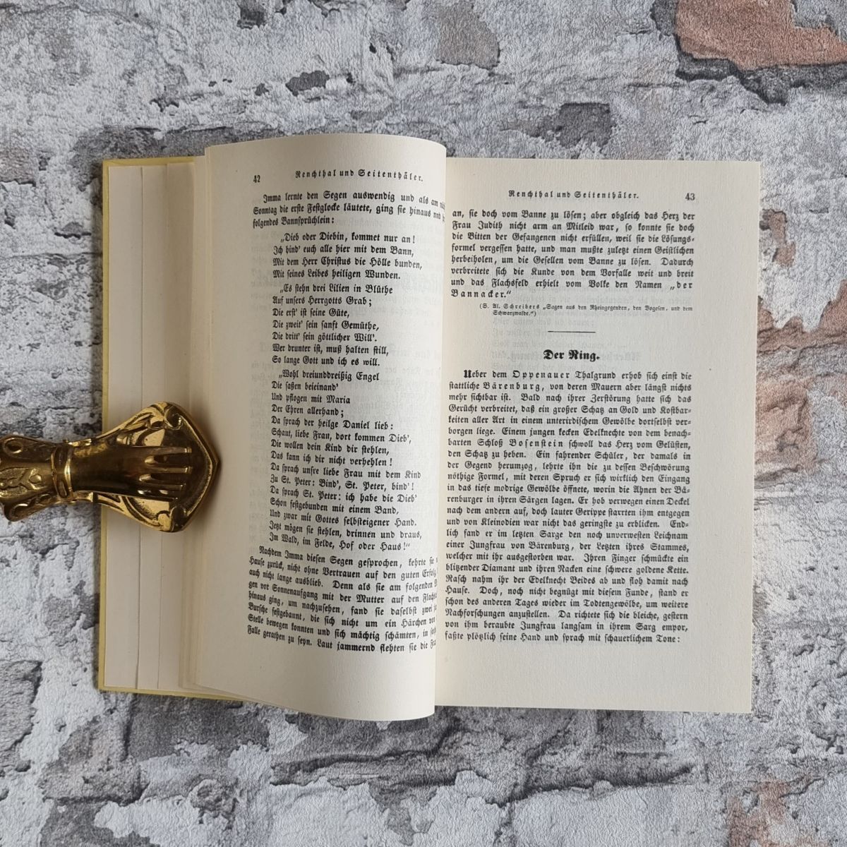 Schnezler, August (Hrsg.). Badisches Sagenbuch. 1/2. Eine Sammlung der schönsten Sagen, Geschichten, Märchen und Legenden des Badischen Landes aus Schrifturkunden, dem Munde des Volkes und der Dichter. 1: Erste Abtheilung: Vom Bodensee bis zur Ortenau. 2.Abteilung: Von der Ortenau bis zur Maingegend.