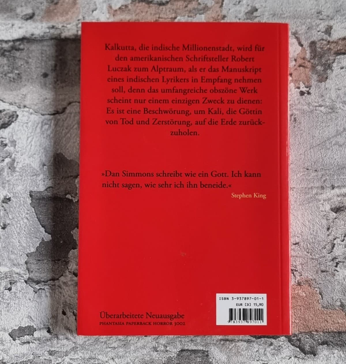 Kommentar/Zustand: Deutsche Erstausgabe des vielfach ausgezeichneten Debütromans von Dan Simmons, der bis heute als moderner Klassiker des literarischen Horrors gilt. Song of Kali verbindet düstere Mythologie mit psychologischem Schrecken und entführt den Leser in ein albtraumhaftes Kalkutta, wo ein amerikanischer Journalist auf die Spuren eines verschollenen Dichters und eines uralten, unheimlichen Kultes stößt. Simmons entfaltet eine atmosphärisch dichte, intensiv erzählte Mischung aus Spannung, Mysterium und existenzieller Bedrohung. – Handschriftlicher Besitzervermerk auf Vortitel unten. Sonst sehr gut erhaltenes Exemplar.